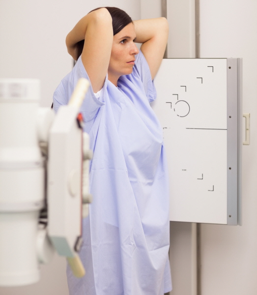 유방촬영이란 X-선을 통과시켜서 유방의 조직을 관찰하는 검사법으로 유방을 살짝 눌러서 유방만을 자세히 관찰합니다. 이 검사를 통해서 섬유선종, 섬유성 낭종, 유방암 등의 유방질환을 진단할 수 있는데, 유방암의 조기발견을 위해서 40세 이상의 여성에서는 2-3년에 한 번씩 정기적 유방촬영은 필수적입니다.
