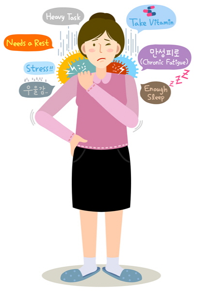 만성피로란 과로나 수면부족, 임신에 의해 생긴 생리적 피로가 없는 상태에서 6개월 이상 장기간에 걸쳐 지속적으로 나타나는 극도의 피로감과 신체의 거의 모든 부분에 걸쳐 발현되는 통증현상을 특징으로 하는 복합적인 만성질환을 일컫습니다. 병원검사로도 특별한 원인이 밝혀지지 않고 휴식을 취해도 피로가 가시지 않습니다. 만성피로증후군은 여자에서 남자보다 두배 많으며, 대체로 25~45세에서 발병합니다.