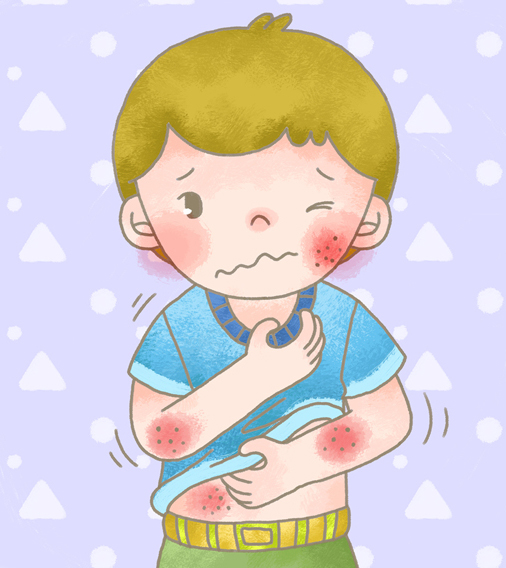 - 경계가 뚜렷하지 않은 붉은 색 반점이나 물집이 손바닥과 발바닥을 포함해서 전신에 돋아날 수 있습니다.