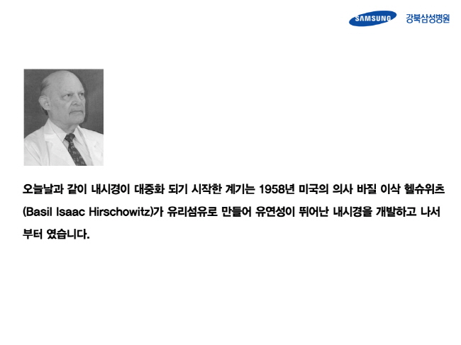 오늘날과 같이 내시경이 대중화 되기 시작한 계기는 1958년 미국의 의사 바질 이삭 헬슈위츠(Basil Isaac Hirschowitz)가 유리섬유로 만들어 유연성이 뛰어난 내시경을 개발하고 나서부터 였습니다.