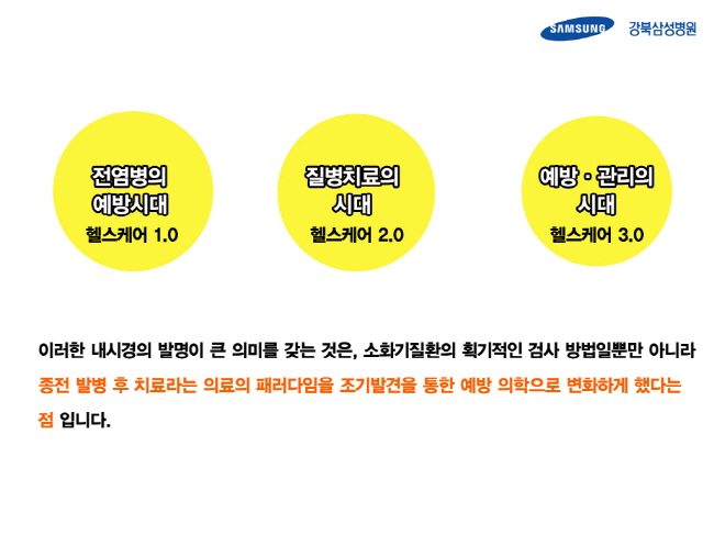 이러한 내시경의 발명이 큰 의미를 갖는 것은, 소화기질환의 획기적인 검사 방법일뿐만 아니라 종전 발병 후 치료라는 의료의 패러다임을 조기발견을 통한 예방 의학으로 변화하게 했다는 점 입니다.