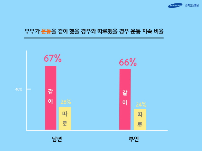 부부가 운동을 같이 했을 경우와 따로했을 경우 운동 지속 비율