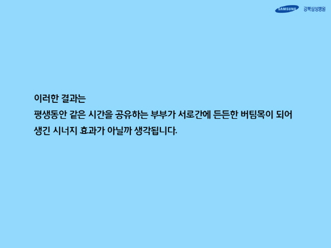 평생동안 같은 시간을 공유하는 부부가 서로간에 든든한 버팀목이 되어 생긴 시너지 효과가 아닐까 생각됩니다.