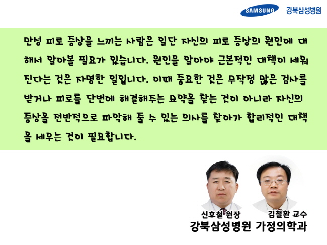 진다는 것은 자명한 일입니다. 이때 중요한 것은 무작정 많은 검사를 받거나 피로를 단번에 해결해주는 묘약을 찾는 것이 아니라