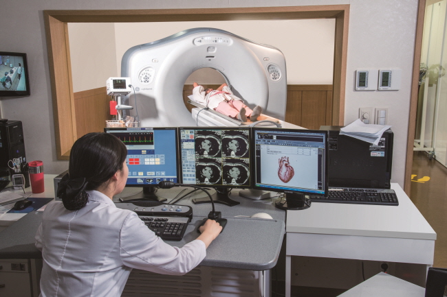 관상동맥 석회 수치는 혈관에 칼슘이 쌓여 딱딱하게 굳어지는 혈관 석회화 현상을 CT촬영을 이용해 수치화한 것으로 심장질환의 주요원인인 동맥경화의 정도와 비례하며 향후 심장질환 발생 가능성도 높아지게 됩니다.